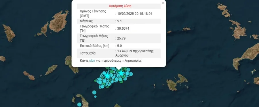 Το εστιακό βάθος του σεισμού καταγράφηκε στα 5 χιλιόμετρα ενώ το επίκεντρό του εντοπίζεται στα 13 χιλιόμετρα Νότια της Αρκεσίνης Αμοργού.