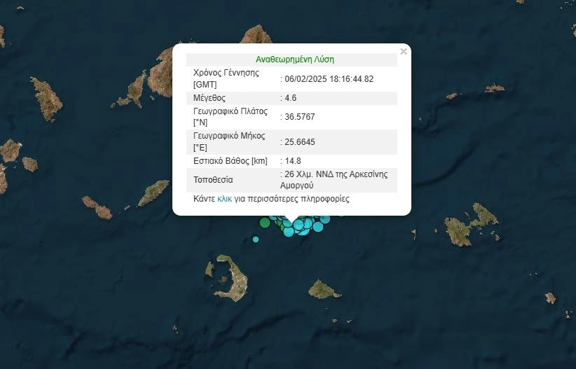 Σεισμική δόνηση 4,6 Ρίχτερ σημειώθηκε νωρίτερα ανοιχτά της Αμοργού.