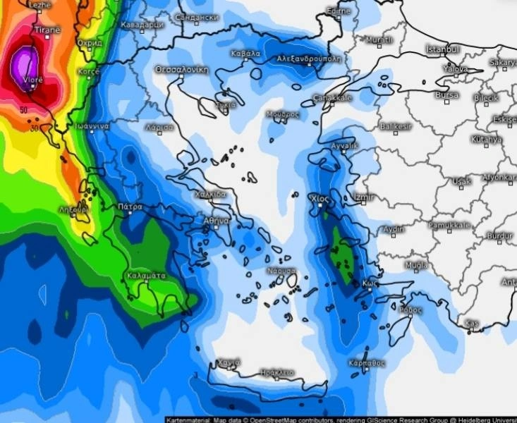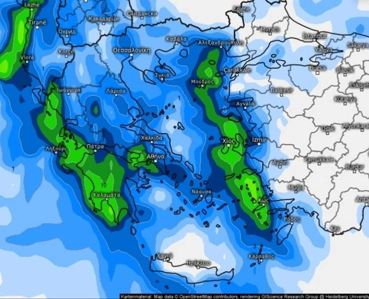 -Την Πέμπτη αναμένεται να έχουμε μία σύντομη ατμοσφαιρική διαταραχή από τα δυτικά προς τα ανατολικά, στην ουσία εξπρές που θα μας επηρεάσει με βροχές και κατά τόπους ισχυρές καταιγίδες από το ξημέρωμα πρώτα σε Ιόνιο, Δυτικά Ηπειρωτικά και μέχρι το μεσημέρι-απόγευμα τα φαινόμενα θα επεκταθούν στα βόρεια και τα νησιά του Ανατολικού και Νότιου Αιγαίου, ενώ τα φαινόμενα στα δυτικά θα συνεχίζονται. Πέρασμα βροχής ή καταιγίδας και σε Αττική-Θεσσαλονίκη. Τα φαινόμενα θα περιοριστούν μέχρι το βράδυ στην Ανατολική χώρα, όπως στα νησιά του Ανατολικού Αιγαίου, την Θράκη, τις Κυκλάδες και τα Δωδεκάνησα. Την Παρασκευή τα φαινόμενα θα επηρεάζουν μέχρι το μεσημέρι μόνο Κεντρική-Ανατολική Μακεδονία, Θράκη, Νησιά Ανατολικού Αιγαίου και Δωδεκάνησα, με εξασθένιση από το απόγευμα και μετά. Ενίσχυση των νοτιάδων στα πελάγη στα 6-7 και τοπικά 8 μποφόρ την Πέμπτη με εξασθένιση από τα δυτικά προς τα ανατολικά με το πέρασμα της διαταραχής. Η θερμοκρασία θα σημείωση μικρή πτώση ως προς τις μέγιστες τιμές της λόγω των φαινομένων.