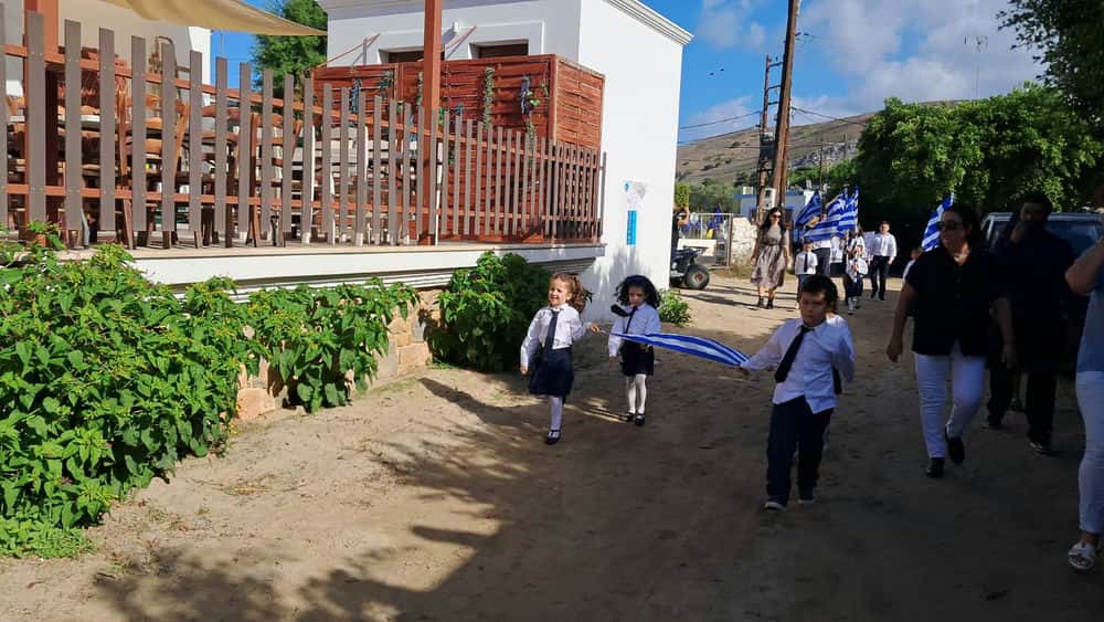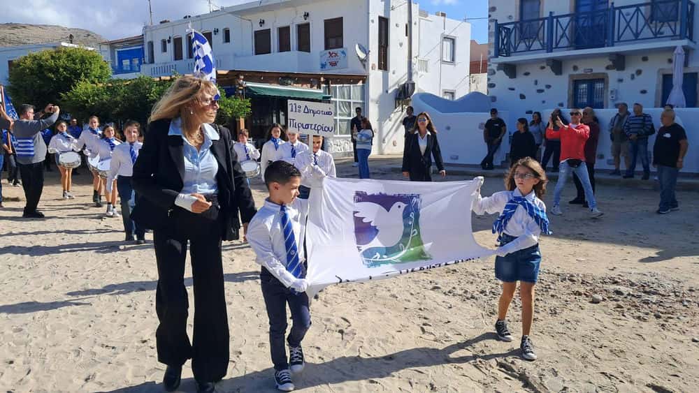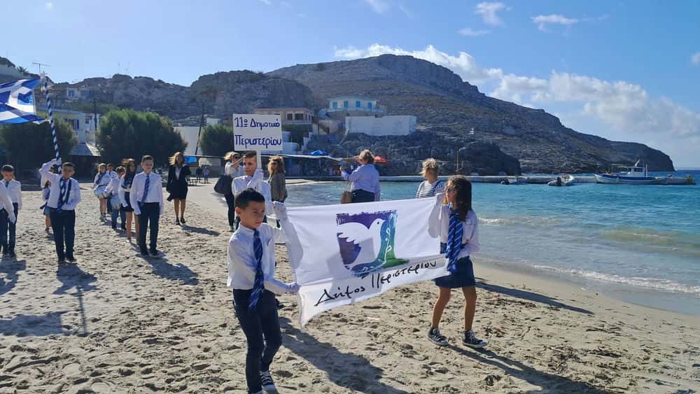 Μέσα σε κλίμα συγκίνησης, πραγματοποιήθηκε σήμερα στην ακριτική Ψέριμο η παρέλαση της 28ης Οκτωβρίου – όλα τα παιδιά παρέλασαν στην παραλία του νησιού, τιμώντας το ΟΧΙ του 1940.